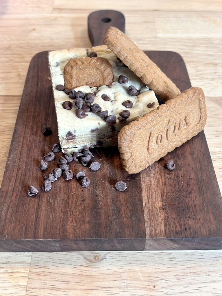 Meet your new obsession. A soft, chewy chocolate chip cookie dough base hides a creamy cookie butter center that’s pure decadence. Topped with a generous handful of semi-sweet chocolate chips, every bite is the perfect balance of sweet, salty, and irresistibly smooth. It’s comfort and crave all rolled into one bar.
