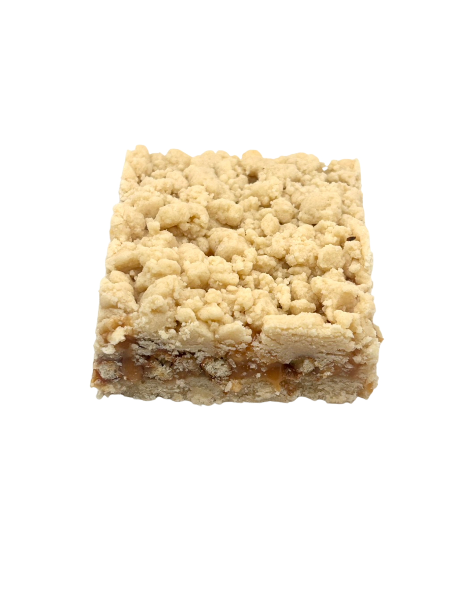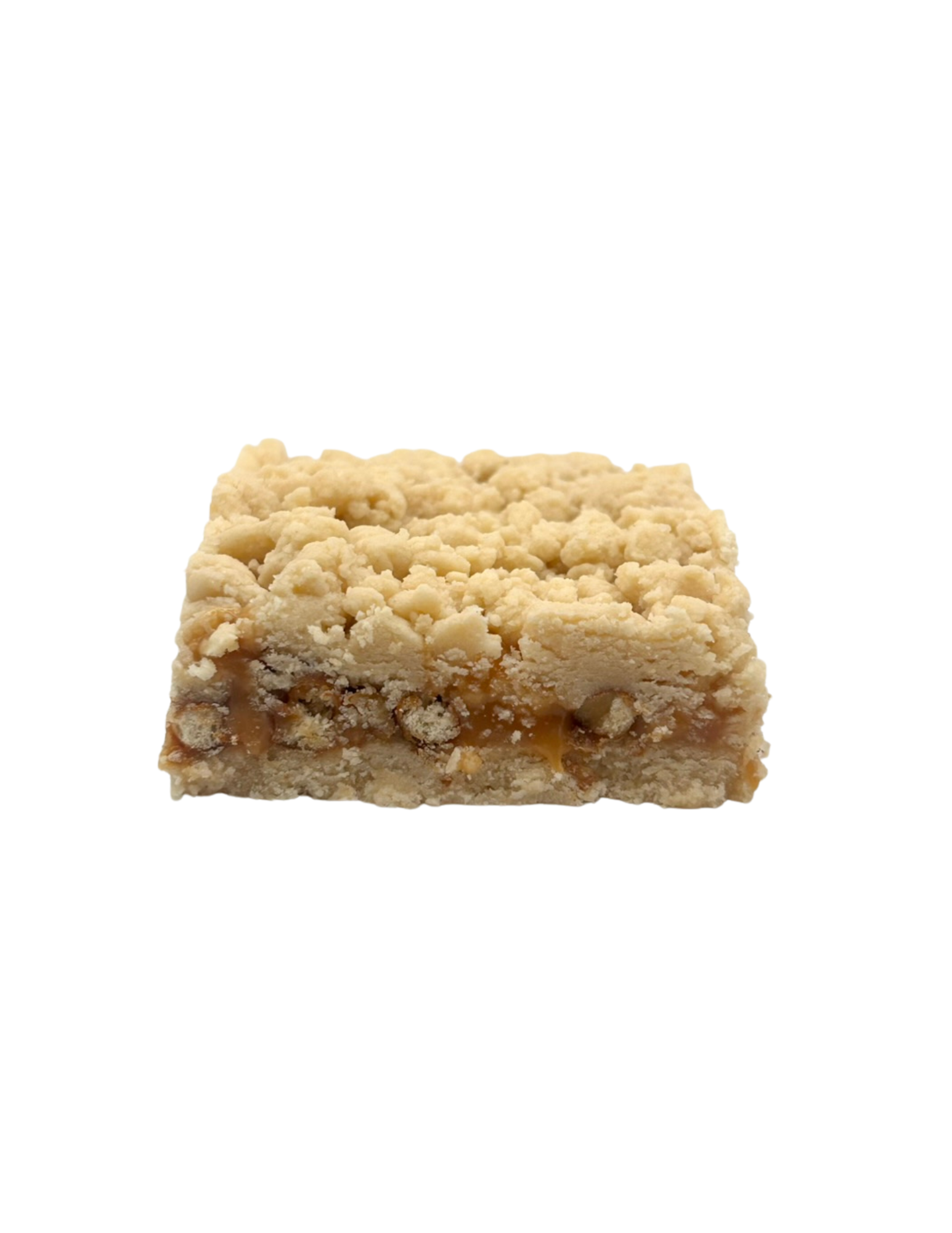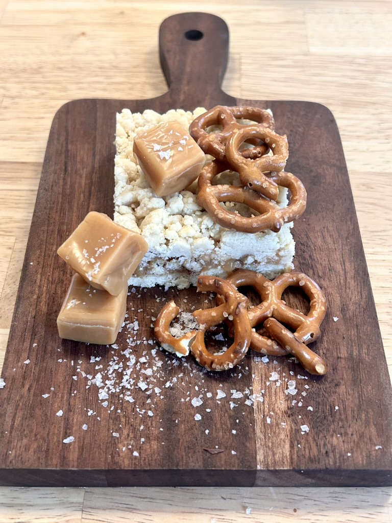 Sweet meets salty in this flavor powerhouse. A buttery shortbread crust (egg-free but full of flavor) holds a rich, gooey salted caramel center layered with crunchy pretzels. Finished with a sprinkle of sea salt flakes, it’s the perfect mix of crisp, creamy, and crave-worthy — a bar that plays both sides and wins every time.