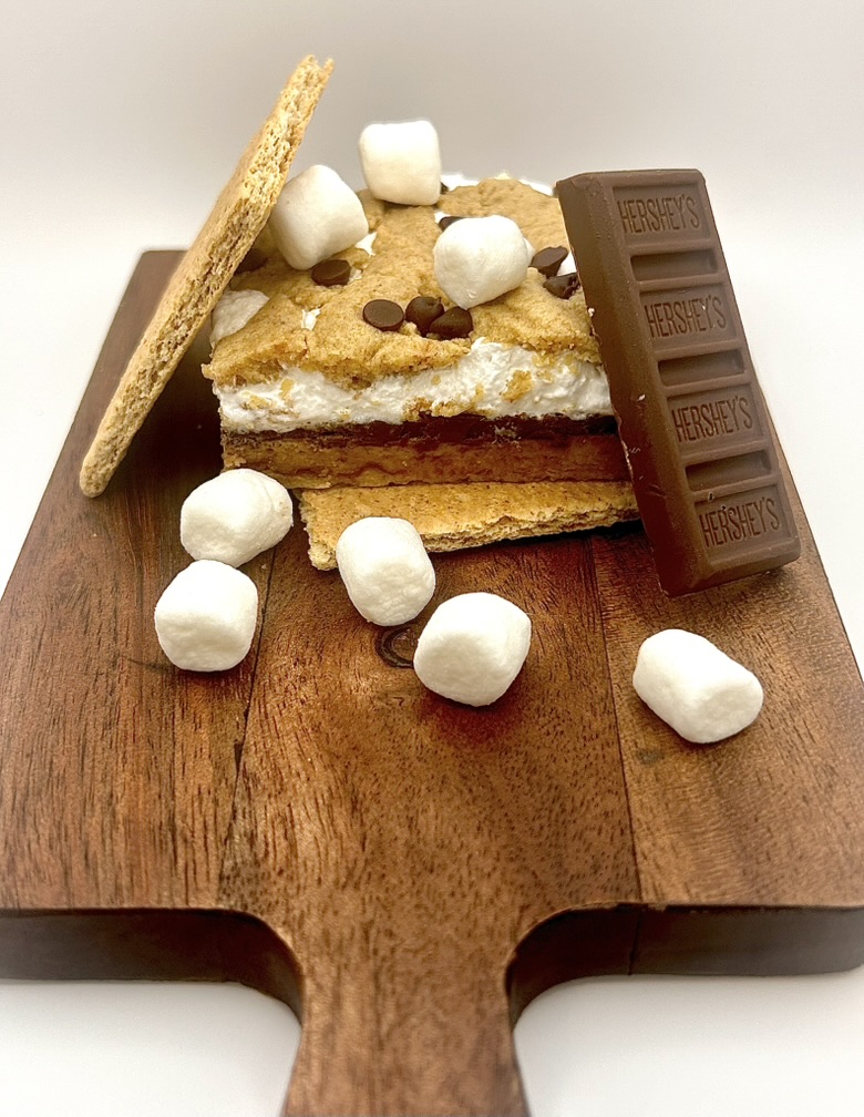 No campfire required — this is s’mores reimagined. A buttery graham cracker base sets the stage, layered with rich Hershey’s chocolate and gourmet vanilla whey/casein protein blend for a boost that’s as functional as it is indulgent. Homemade marshmallow fluff is swirled in to give it that gooey, nostalgic pull, while mini chocolate chips and mini marshmallows crown the top. It’s gooey, crunchy, chocolatey perfection — the kind of bar that brings the campsite vibes anywhere you go.